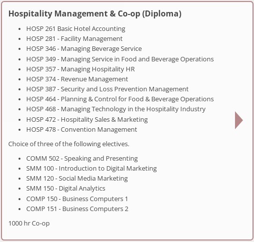 - Canadian College Hospitality Management Co-op Certificate