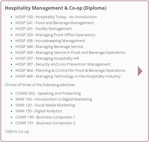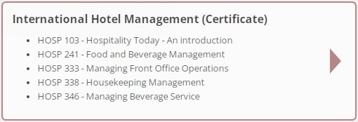 Hospitality Marketing and Sales (Certificate): Este programa é projetado para estudantes interessados em prosseguir carreiras em marketing e vendas dentro da indústria de hotelaria.